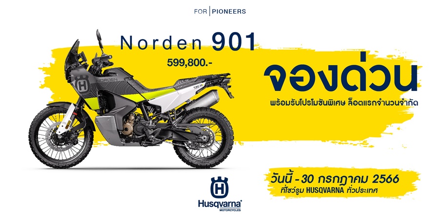 Husqvarna (ฮุสกวาน่า) มอบข้อเสนอสุดพิเศษในการเป็นเจ้าของ Norden 901 ที่เปิดตัวมากับราคาอย่างเป็นทางการเพียง 599,800 บาท ด้วยข้อเสนอพิเศษ ตั้งแต่วันนี้ - 30 กรกฎาคม 2566