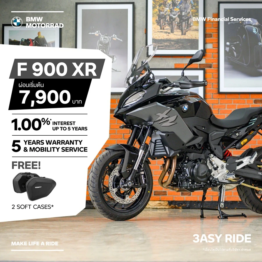 สปอร์ตทัวริ่ง พร้อมพิชิตทุกเส้นทาง กับ BMW F 900 XR ราคาเริ่มต้นที่ 564,000 บาท ดาวน์เริ่มต้น 112,800 บาท* ผ่อนเริ่มต้น 7,900 บาท/เดือน* พร้อมข้อเสนอสุดคุ้ม