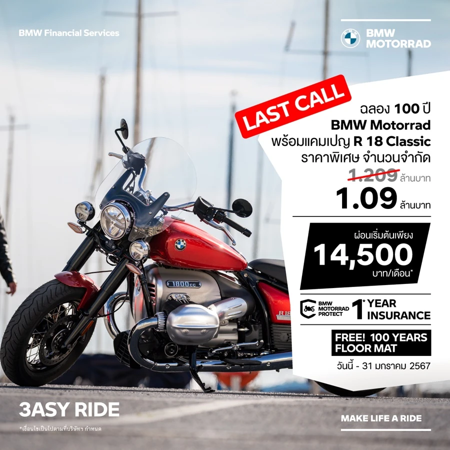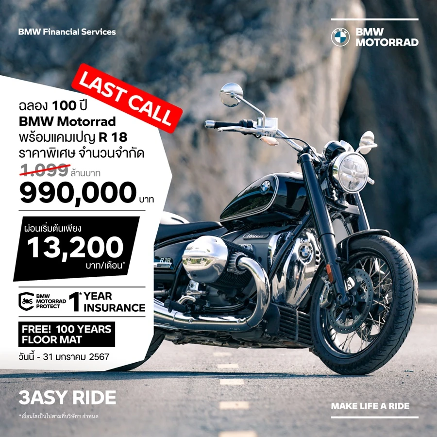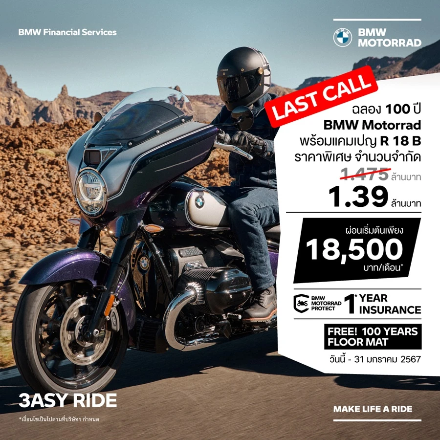 BMW Motorrad หลากหลายรุ่น ตอบโจทย์ทุกสาย มีให้ครบทุกความต้องการ ด้วย Ride Into Celebration Bliss Campaign, ฟรี! ประกันภัยชั้น 1, ฟรี! BMSI ปี 3, ผ่อน 1% นานสูงสุด 5 ปี, วารันตีและบริการช่วยเหลือฉุกเฉิน นาน 5 ปี และต่อเวลาตามคำเรียกร้องกับ BMW R 18 Family ราคาพิเศษ จำนวนจำกัด ฉลอง 100 ปี BMW Motorrad