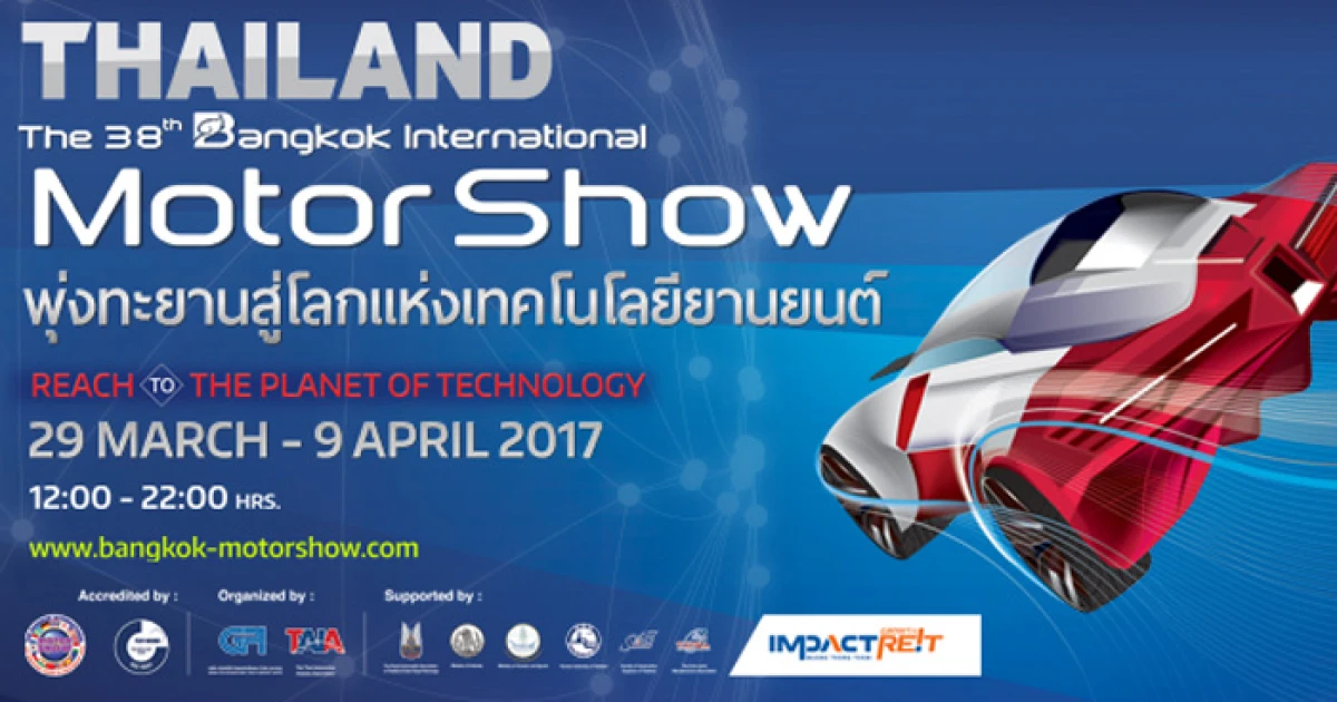 งาน บางกอก มอเตอร์โชว์ 2017 (ฺBangkok Motor Show 2017) หรือ The 38th Bangkok International Motor Show ติดตามข่าว รถยนต์เปิดตัวใหม่-พริตตี้ Pretty-โปรโมชั่น ได้ที่นี่ ในปีนี้งานจัดขึ้นระหว่างวันที่ 29 มีนาคม - 9 เมษายน 2560 ณ อาคารชาเลนเจอร์ 1 - 3 อิมแพค เมืองทองธานี ภายใต้คอนเซปต์ "พุ่งทะยานสู่โลกแห่งเทคโนโลยียานยนต์" หรือ "Reach to the Planet of Technology" การพัฒนาอย่างไม่หยุดยั้งของเทคโนโลยีนวัตกรรมยานยนต์ สะกดสายตาทุกคู่ที่จับจ้อง ด้วยเส้นสายรูปแบบ สรีระที่ลงตัวเชิญชวนให้สัมผัส กระตุ้นอารมณ์แห่งความเร้าใจให้พุ่งทะยานสู่โลกยนตกรรม งานบางกอก อินเตอร์เนชั่นแนล มอเตอร์โชว์ ครั้งที่ 38 งานแสดงยนตรกรรมที่ปลุกอารมณ์แห่งความเร้าใจในโลกยนตรกรรม คาดเงินสะพัดภายในงานกระตุ้นเศรษฐกิจประเทศไม่ต่ำกว่า 4 หมื่นล้านบาท