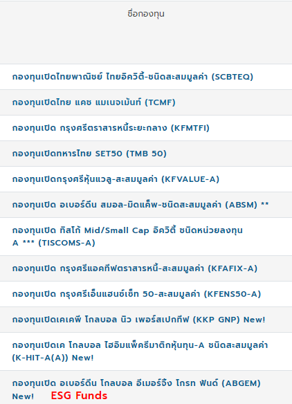 จะเห็นว่ามีการคัดเลือกกองทุนจากหลาย บลจ. และมีทั้งในประเทศ และต่างประเทศ และแบบกองทุนผสม