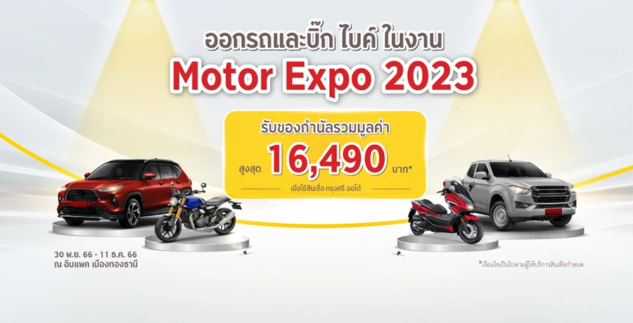 เช็กก่อน…สินเชื่อรถยนต์ และโปรโมชันการเงินที่เกี่ยวข้องจากสถาบันการเงิน ช่วงงาน Motor Expo 2023 กรุงศรีออโต้ : ออกรถใหม่ในงาน Motor Expo 2023 ลุ้นรับของกำนัลมูลค่าสูงสุด 16,490 บาท*
