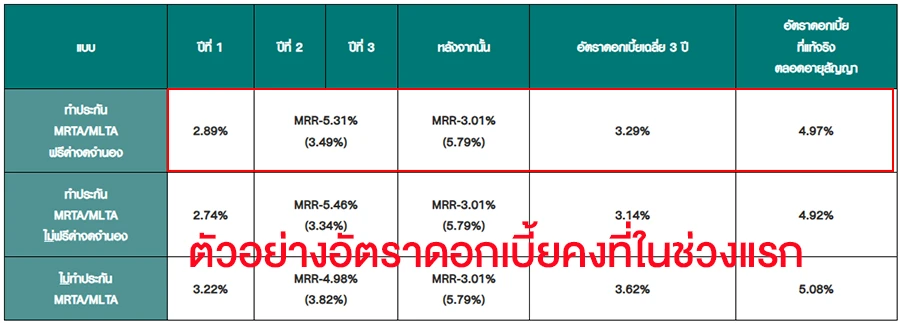 ข้อดีของดอกเบี้ยคงที่ในช่วงแรก : มักจะมีอัตราดอกเบี้ยต่ำกว่าดอกเบี้ยคงที่ตลอดอายุสัญญา ทำให้ผู้กู้สามารถประหยัดเงินในช่วงแรกได้