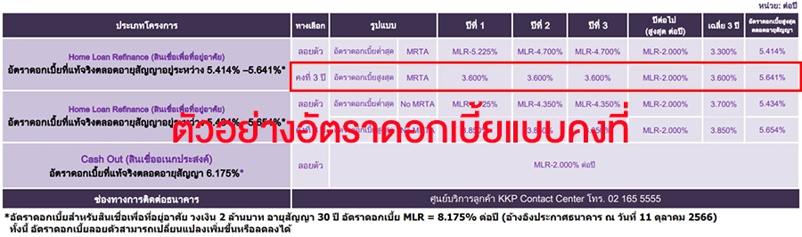 ตัวอย่าง อัตราดอกเบี้ยรีไฟแนนซ์ธนาคารเกียรตินาคินภัทร