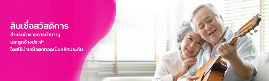 - ไม่กำหนดรายได้ขั้นต่ำต่อเดือน โดยรายได้ของผู้กู้ ให้คำนวณจากเงินบำนาญรายเดือนรวม กับเงินช่วยการครองชีพผู้รับบำนาญ (เงิน ช.ค.บ.)