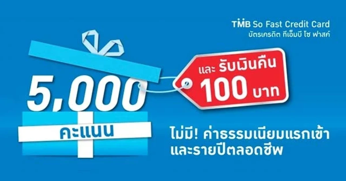 สมัครบัตรเครดิต TMB So Fast รับเพิ่ม 5,000 คะแนน และเงินคืน 100 บาท
