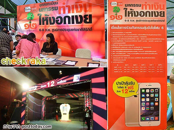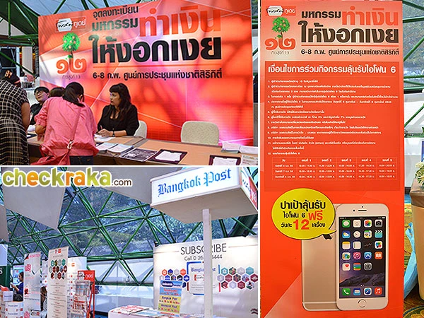 - ประกาศรายชื่อผู้ได้รับไอโฟน 6 ในงานมหกรรมทำเงินให้งอกเงย วันศุกร์ที่ 6 กุมภาพันธ์ - วันอาทิตย์ที่ 8 กุมภาพันธ์ 2558 ณ ศูนย์การประชุมแห่งชาติสิริกิติ์