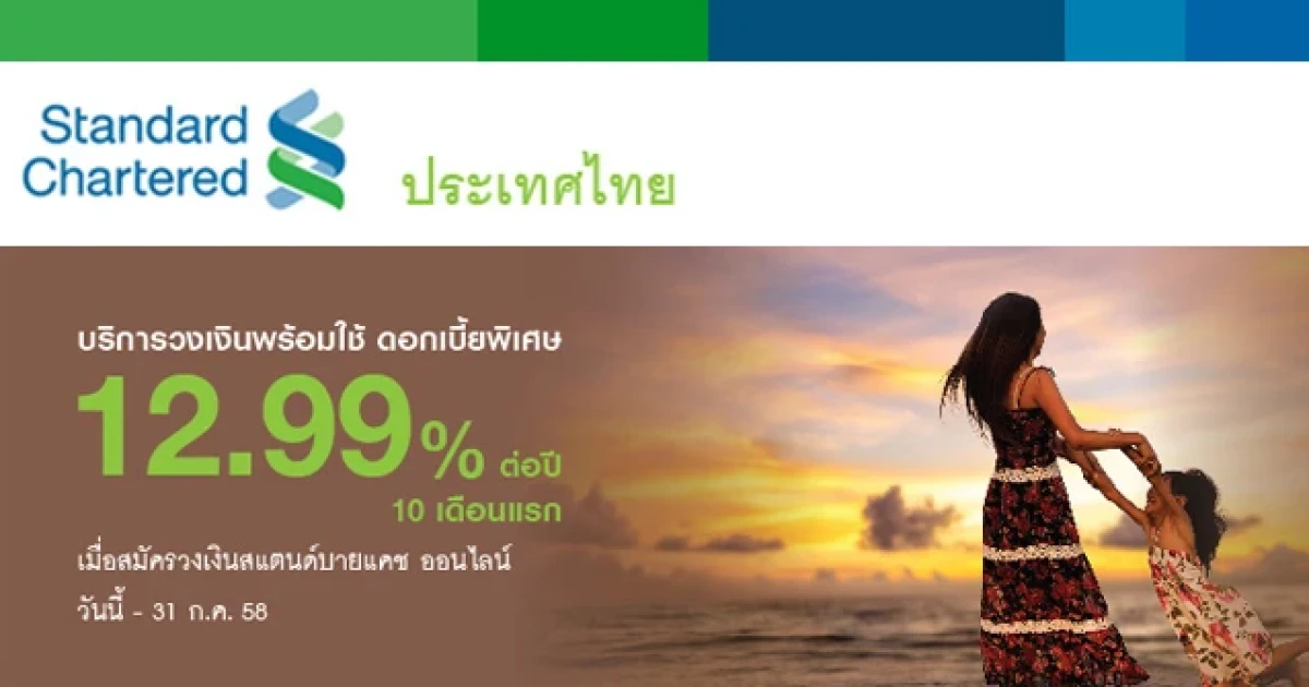 บริการวงเงินพร้อมใช้ ดอกเบี้ยพิเศษ 12.99% ต่อปี 10 เดือนแรก ที่ สแตนดาร์ดชาร์เตอร์ด ไทย