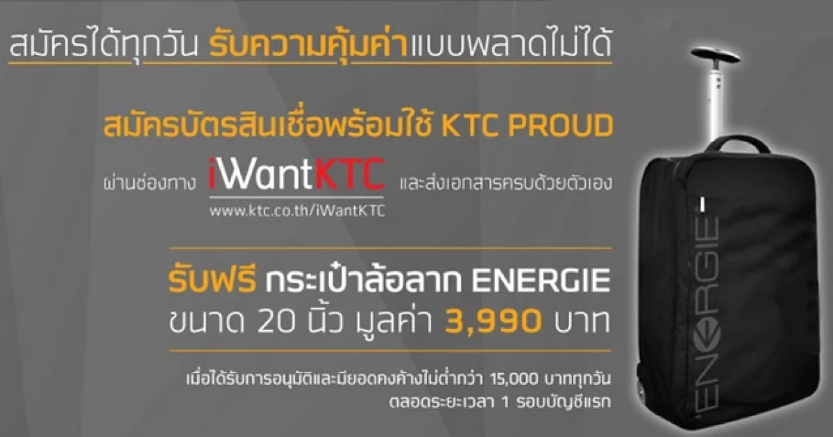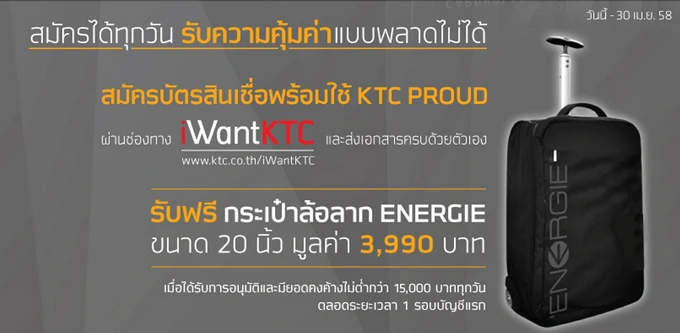 รับฟรี! กระเป๋าล้อลาก ENERGIE เมื่อสมัครบัตรสินเชื่อ KTC PROUD