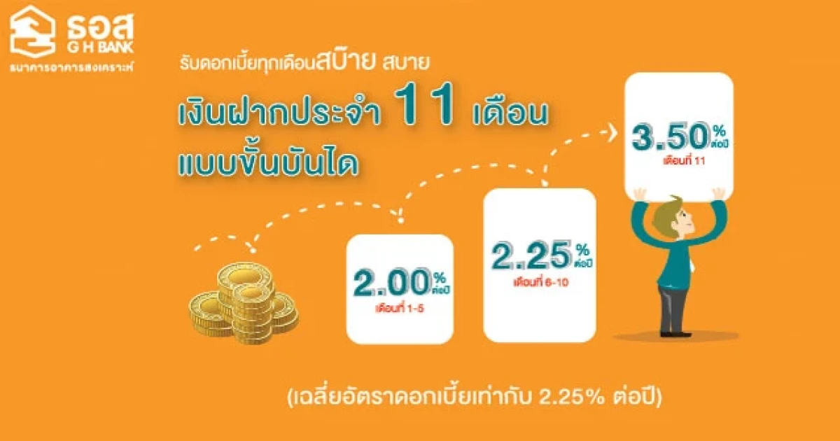 เงินฝากประจำ 11 เดือน แบบขั้นบันได รับดอกเบี้ยทุกเดือนสบ๊าย สบาย ... จาก ธอส.