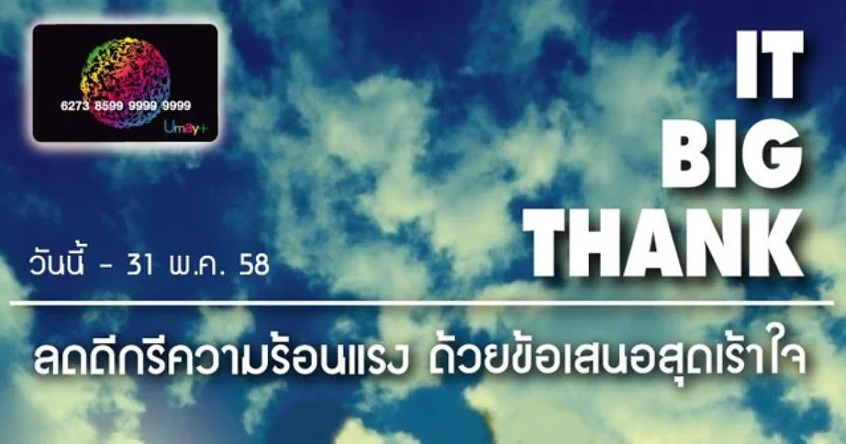 บัตรกดเงินสดยูเมะ พลัส มอบโปรโมชั่น เพื่อลดดีกรีความร้อนแรง ด้วยข้อเสนอสุดเร้าใจ ที่ IT City ทุกสาขา ถึง 31 พฤษภาคม 2558