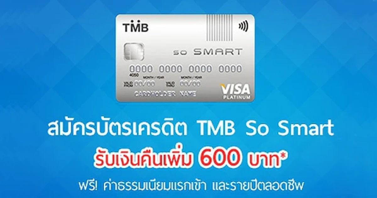 สมัครบัตรเครดิต TMB So Smart รับเงินคืน 600 บาท