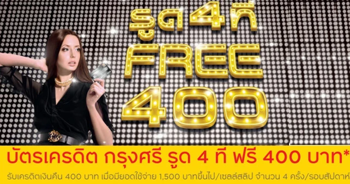 บัตรเครดิตกรุงศรี รูด 4 ที ฟรี 400 บาท