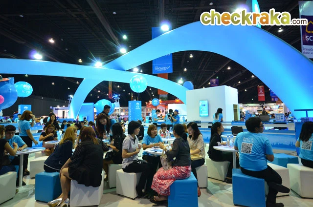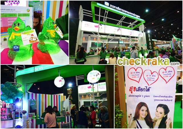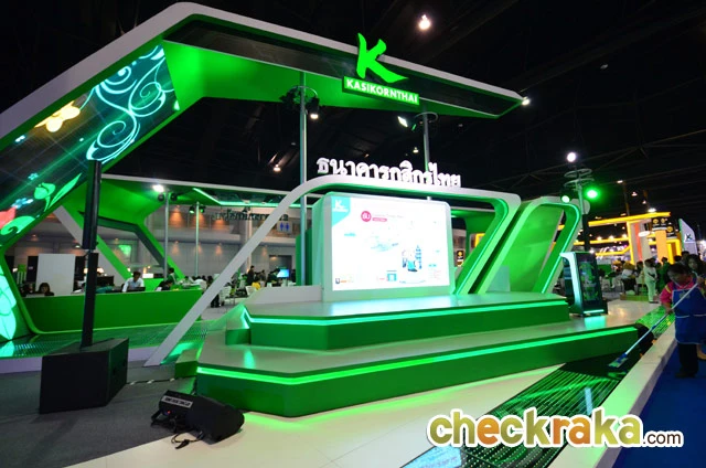 ธนาคารกสิกรไทยมีการจัดรูปแบบบูธด้วยการนำสีเขียวคือสีประจำธนาคารมาโชว์ในงานครั้งนี้