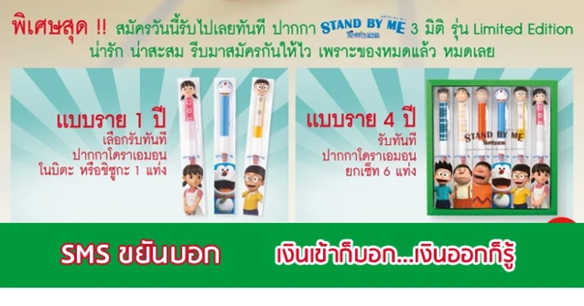 ธ.กสิกรไทย ขยายเวลาการสมัคร SMS ขยันบอก พร้อมรับทันที!! ปากกา Stand By ME 3 มิติ