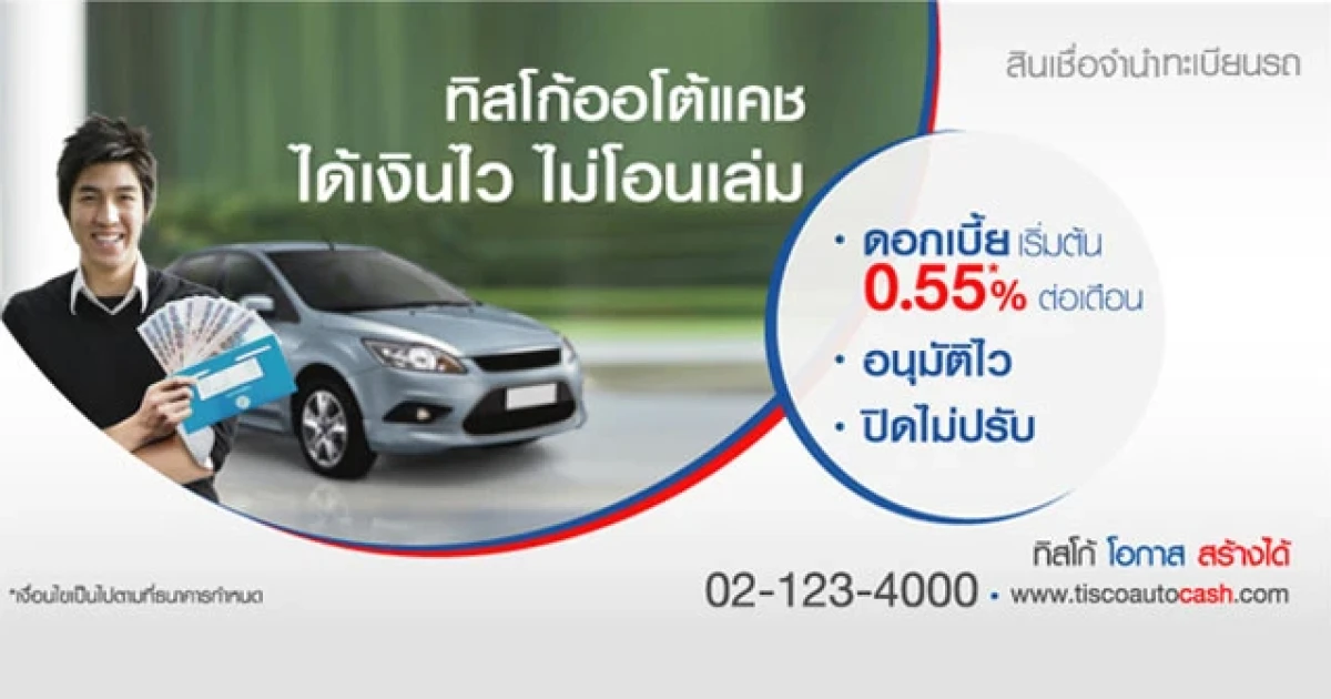 ทิสโก้ออโต้แคช "ได้เงินไว ไม่โอนเล่ม" ดอกเบี้ยเริ่มต้น 0.55% ต่อเดือน