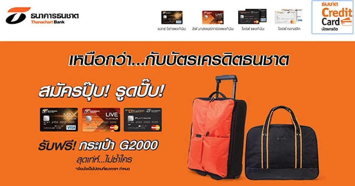 สมัครปุ๊บ! รูดปั๊บ! รับฟรี! กระเป๋า G 2000 เลือกสมัครบัตรเครดิตธนชาตบัตรใดก็ได้