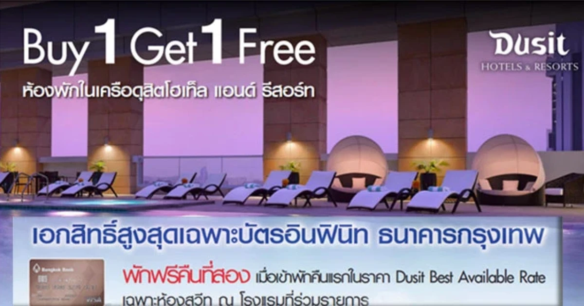 Buy 1 Get 1 Free ห้องพักในเครือดุสิต โฮเท็ล แอนด์ รีสอร์ท เอกสิทธิ์สูงสุดเฉพาะบัตรอินฟินิท ธนาคารกรุงเทพ