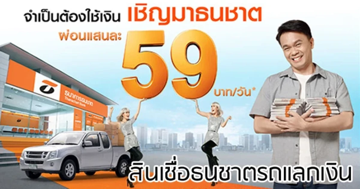 สินเชื่อธนชาตรถแลกเงิน ผ่อนแสนละ 59 บาท/วัน สมัครวันนี้ ... ผ่อนดี มีเงินคืน