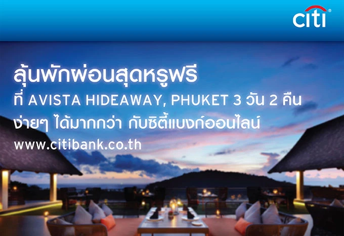 ลุ้นพักผ่อนสุดหรูฟรี! ที่ AVISTA HIDEAWAY, PHUKET 3 วัน 2 คืน กับซิตี้แบงก์ออนไลน์