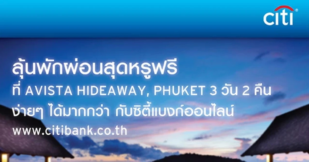 ลุ้นพักผ่อนสุดหรูฟรี! ที่ AVISTA HIDEAWAY, PHUKET 3 วัน 2 คืน กับซิตี้แบงก์ออนไลน์