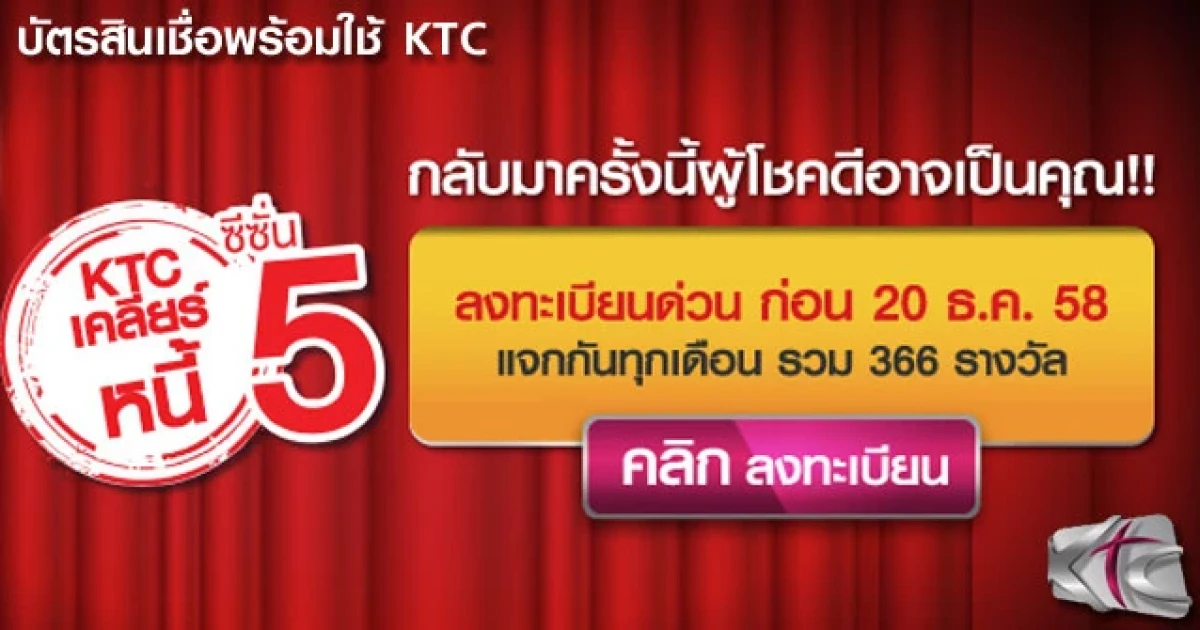 KTC เคลียร์หนี้ ซีซั่น 5 กลับมาครั้งนี้ ผู้โชคดีอาจเป็นคุณ เพิ่มโอกาสลุ้นมากกว่า 6 ครั้ง พร้อมของรางวัลที่มากกว่าเดิม