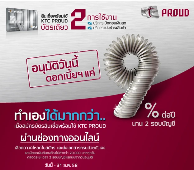 สมัครสินเชื่อ KTC PROUD ผ่านช่องทางออนไลน์ อนุมัติวันนี้ ดอกเบี้ยแค่ 9% ต่อปี นาน 2 รอบบัญชี