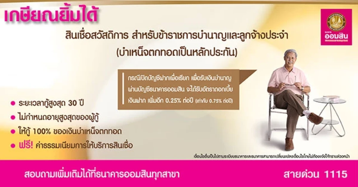 เติมความสุข ในวัยเกษียณ กับสินเชื่อสวัสดิการ สำหรับข้าราชการบำนาญและลูกจ้างประจำ จาก ธ.ออมสิน