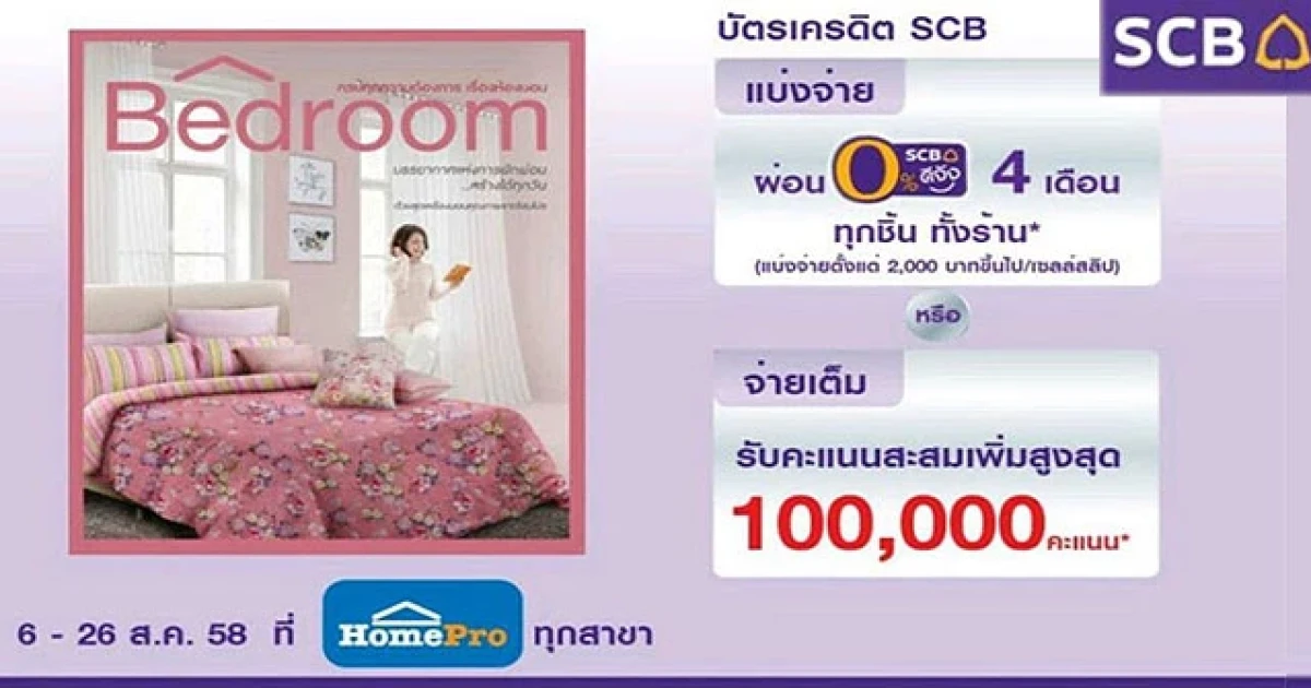 บัตรเครดิต SCB มอบโปรโมชั่นโดนๆ ให้คนรักบ้านได้จัดเต็มกับห้องนอน ที่โฮมโปรทุกสาขา เลือกแบ่งจ่าย 0% หรือจ่ายเต็มรับคะแนนสะสมเพิ่ม