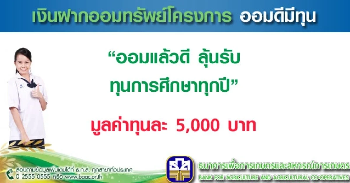 เงินฝากออมดีมีทุน ... ออมแล้วดี ลุ้นรับทุนการศึกษามูลค่า 5,000 บาท จาก ธ.ก.ส.