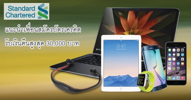 รับเงินคืนสูงสุด 30,000 บาท เพียงแนะนำเพื่อนสมัครบัตรเครดิตสแตนดาร์ด ชาร์เตอร์ด ผ่านช่องทางออนไลน์ สิทธิพิเศษเฉพาะสมาชิกบัตรเครดิตสแตนดาร์ดชาร์เตอร์ด