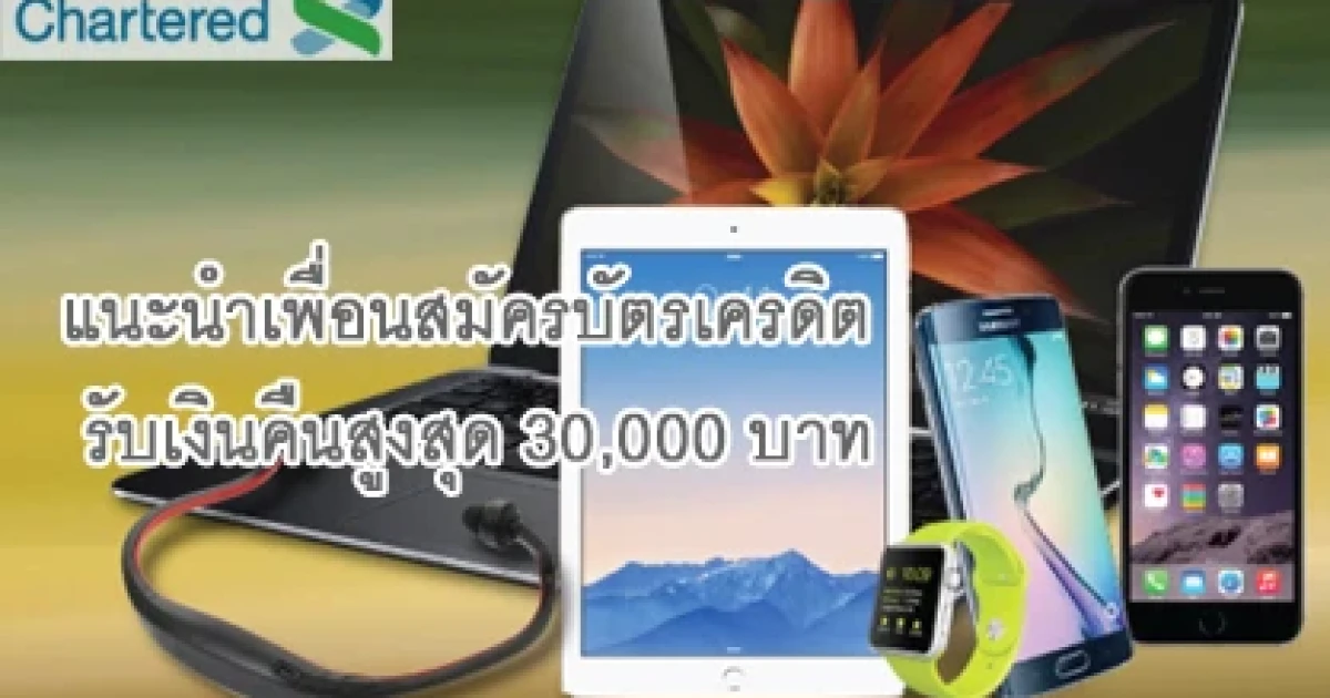 รับเงินคืนสูงสุด 30,000 บาท เพียงแนะนำเพื่อนสมัครบัตรเครดิตสแตนดาร์ด ชาร์เตอร์ด ผ่านช่องทางออนไลน์ สิทธิพิเศษเฉพาะสมาชิกบัตรเครดิตสแตนดาร์ดชาร์เตอร์ด