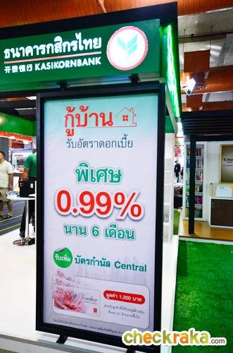 สินเชื่อบ้านอัตราดอกเบี้ยพิเศษ 0.99% นาน 6 เดือน พร้อมรับเพิ่ม บัตรกำนัลจาก Central ที่บูธกสิกรไทย