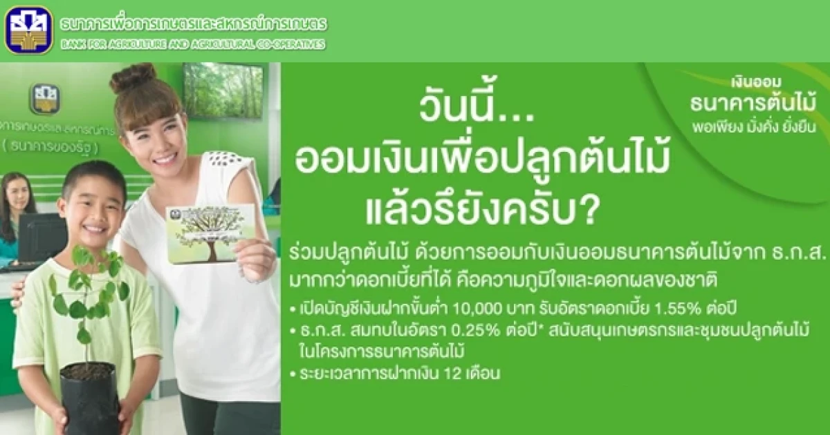 ร่วมปลูกต้นไม้ ด้วยการออมกับเงินออมธนาคารต้นไม้ จาก ธ.ก.ส.