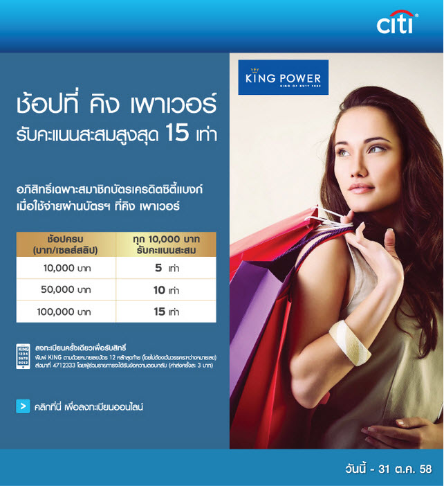 ช้อปที่ คิง พาวเวอร์ ด้วยบัตรเครดิตซิตี้แบงค์ รับคะแนนสะสมสูงสุด 15 เท่า