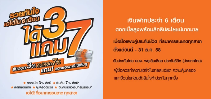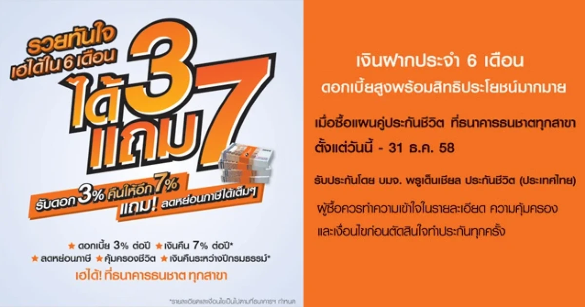 รวยทันใจ เฮได้ใน 6 เดือน กับเงินฝากประจำ 6 เดือน โครงการได้ 3 แถม 7 จาก ธ. ธนชาต