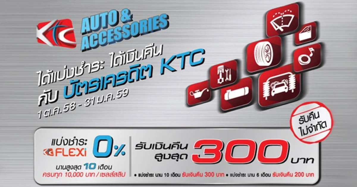KTC Auto & Accessories ได้ทั้งแบ่งชำระ 0% ได้ทั้งเงินคืนสูงสุด 300 บาท กับบัตรเครดิต KTC
