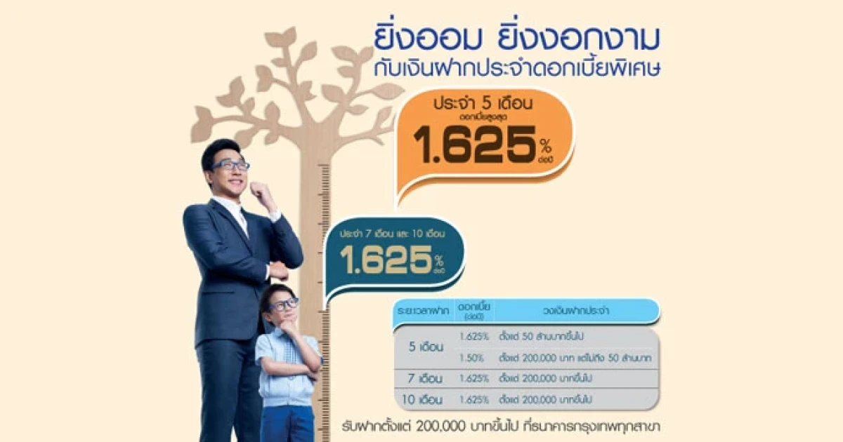 ยิ่งออม ยิ่งงอกงาม กับเงินฝากประจำดอกเบี้ยพิเศษ ธ.กรุงเทพ