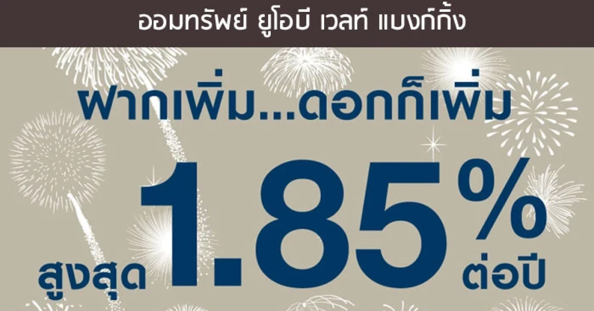 ฝากเพิ่ม ... ดอกก็เพิ่ม สูงสุด 1.85% กับออมทรัพย์ ยูโอบี เวลท์ แบงก์กิ้ง