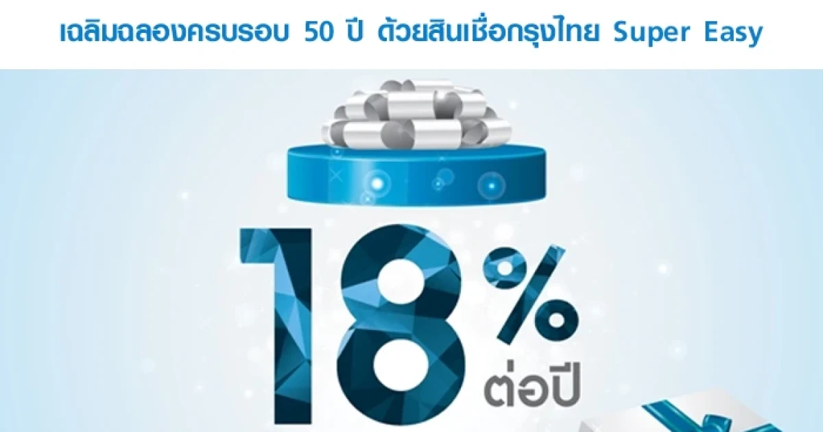 ฉลองครบรอบ 50 ปี ด้วยดอกเบี้ยต่ำ 18% เมื่อกู้สินเชื่อกรุงไทย Super Easy
