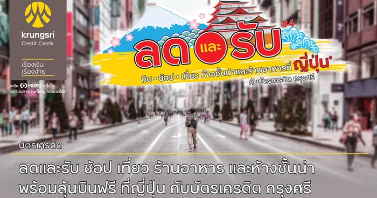 รับคูปองและส่วนสดสูงสุด 10% เมื่อ กิน ช้อป เที่ยวห้างชั้นนำและร้านอาหารกว่า 300 ร้าน พร้อมลุ้นบินฟรี ที่ญี่ปุ่น กับบัตรเครดิตกรุงศรี