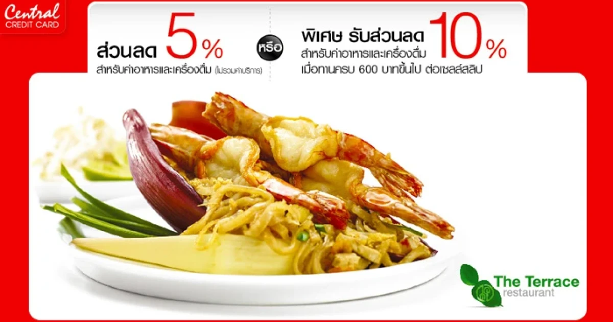 รับส่วนลดสูงสุด 10% เมื่อทานอาหารที่ร้าน The Terrace ทุกสาขา กับบัตรเซ็นทรัล เครดิตคาร์ด