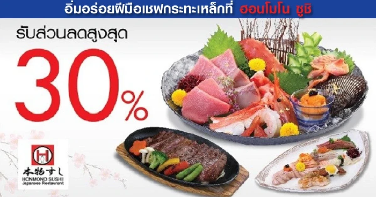 รับส่วนลดสูงสุด 30% เมื่ออิ่มอร่อยที่ร้าน ฮอนโมโน ซูชิ กับบัตรเครดิตธนาคารกรุงเทพ