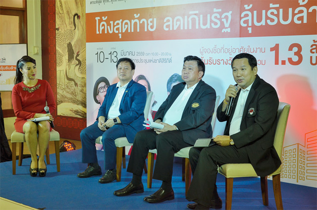 นายวีระกิตติ์ เอกอัครวิจิตร ประธานคณะกรรมการจัดงานมหกรรมบ้านและคอนโด ครั้งที่ 34 เปิดเผยว่า สามสมาคมหลักของวงการอสังหาฯ ได้แก่ สมาคมอสังหาริมทรัพย์ไทย สมาคมธุรกิจบ้านจัดสรร และสมาคมอาคารชุดไทย ร่วมจัดงานมหกรรมบ้านและคอนโด ครั้งที่ 34 ขึ้น ภายใต้คอนเซ็ปต์ "โค้งสุดท้าย ลดเกินรัฐ ลุ้นรับล้าน" เพื่อให้สอดรับกับโค้งสุดท้ายของมาตรการรัฐกระตุ้นภาคอสังหาฯ ของรัฐบาล ที่สนับสนุนเงินกู้เพื่อซื้อที่อยู่อาศัยสำหรับผู้มีรายได้น้อย การลดค่าธรรมเนียมการโอน การลดค่าจดจำนอง ซึ่งจะสิ้นสุด 28 เม.ย. 59 นี้ ตลอดทั้งผู้กู้ซื้อบ้านสามารถใช้สิทธิลดหย่อนภาษี 20% สำหรับบ้านราคาไม่เกิน 3 ล้านบาทได้อีก จึงมั่นใจว่าจะได้รับการตอบรับจากผู้สนใจอย่างล้นหลาม มียอดคนเดินงานมากกว่า 150,000 คน และมียอดขายรวมทั้งจากภายในงานและต่อเนื่องหลังจากงานรวมแล้วมากกว่า 1 หมื่นล้านบาท