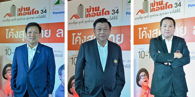 นายพรนริศ ชวนไชยสิทธิ์ นายกสมาคมอสังหาริมทรัพย์ไทย (ซ้าย), นายอธิป พีชานนท์ นายกสมาคมธุรกิจบ้านจัดสรร (กลาง) และนายประเสริฐ แต่ดุลยสาธิต นายกสมาคมอาคารชุดไทย (ขวา) ติดตามรายละเอียดเพิ่มเติมได้ที่ www.housecondoshow.com