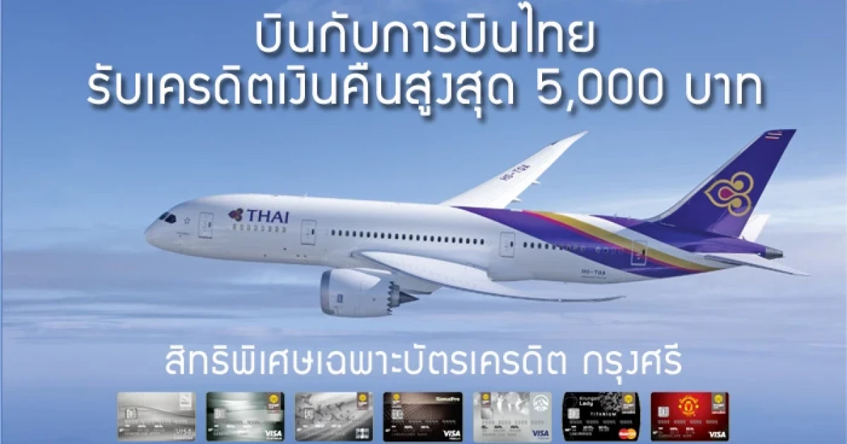 รับเครดิตเงินคืนสูงสุด 5,000 บาท เมื่อซื้อบัตรโดยสารของการบินไทย ผ่านบัตรเครดิต กรุงศรี