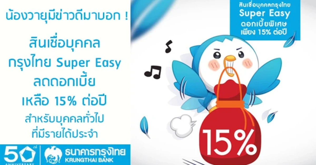 ข่าวดี! สินเชื่อบุคคลกรุงไทย Super Easy ลดดอกเบี้ยเหลือ 15% ต่อปี สำหรับบุคคลทั่วไปที่มีรายได้ประจำ
