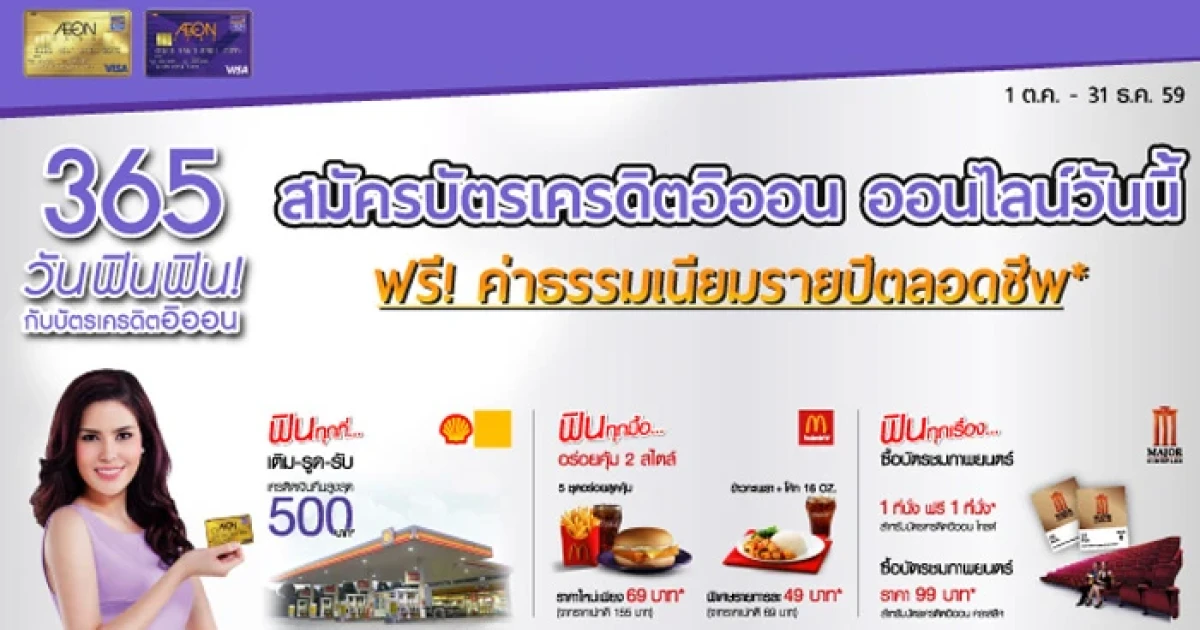 สมัครบัตรเครดิตอิออน ออนไลน์วันนี้ ฟรี! ค่าธรรมเนียมรายปีตลอดชีพ พร้อมรับสิทธิพิเศษ ณ ร้านค้าที่ร่วมรายการ ตลอด 365 วัน ดังนี้