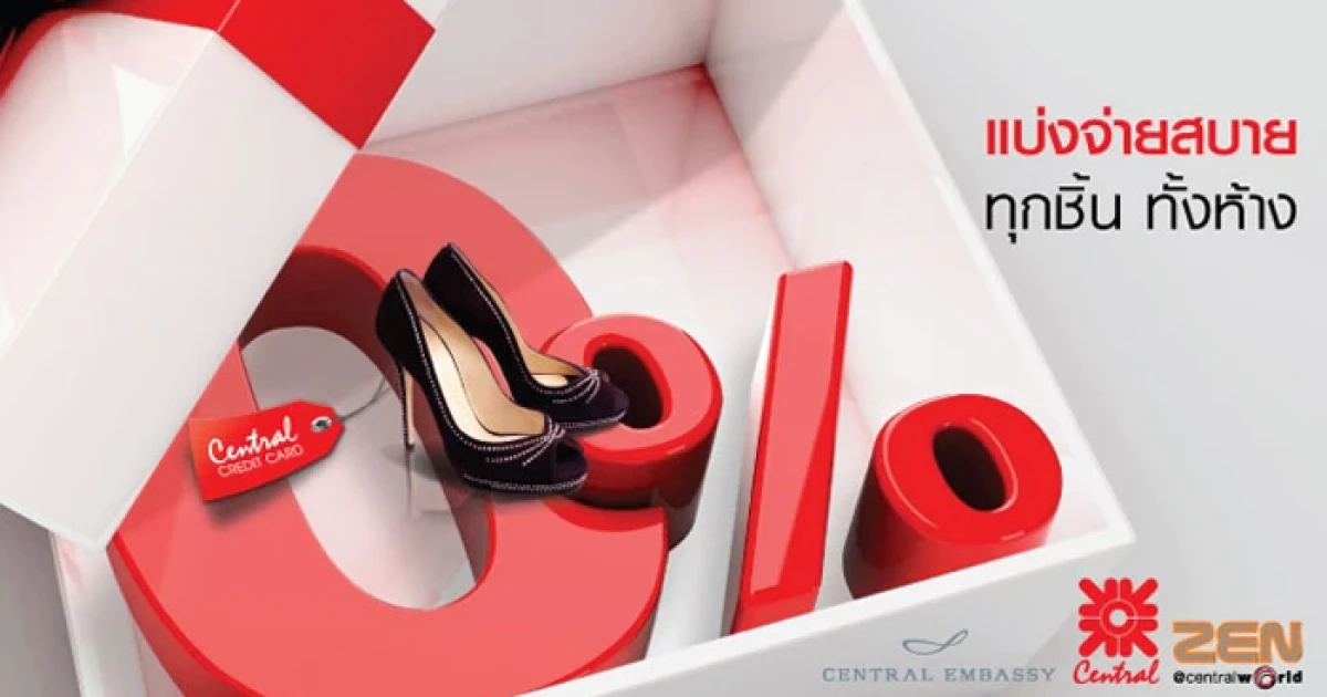 แบ่งจ่ายสบาย 0% ทุกชิ้น ทั้งห้าง นานสูงสุด 6 เดือน ณ ห้างสรรพสินค้าชั้นนำ ด้วยบัตรเซ็นทรัล เครดิตคาร์ด