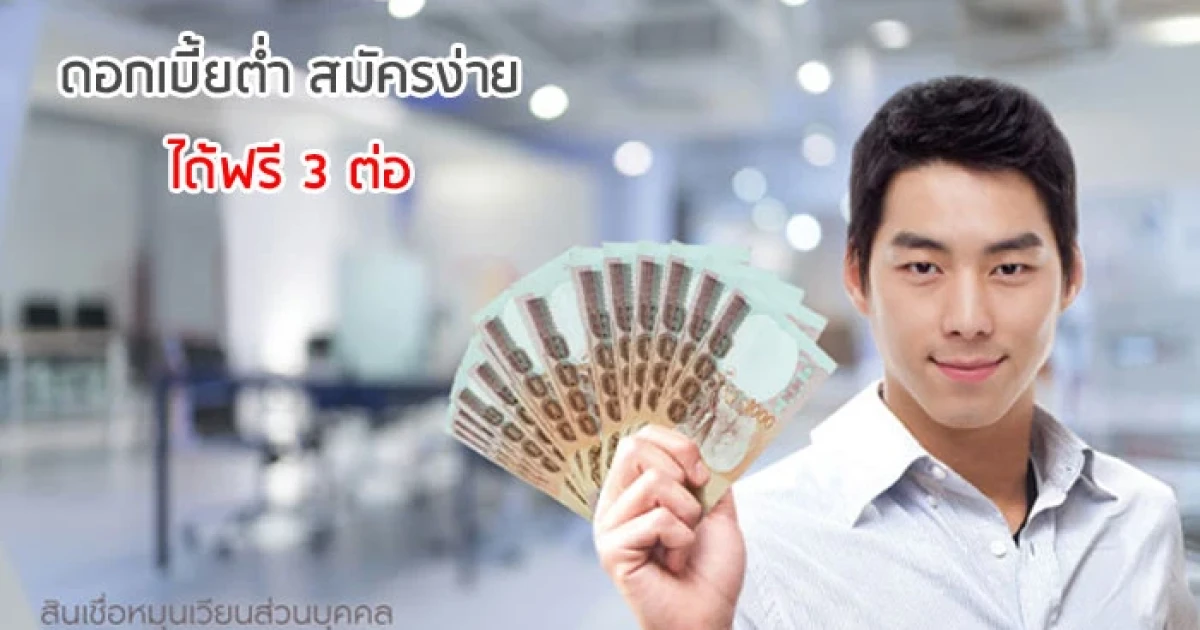 สินเชื่อหมุนเวียนส่วนบุคคล ดอกเบี้ยต่ำ สมัครง่าย ได้ฟรี 3 ต่อ จากธนาคารกรุงศรีอยุธยา